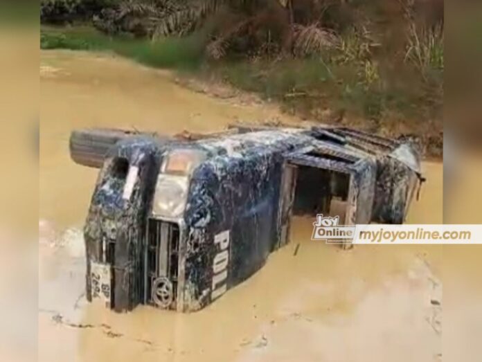 They also stated that this is the second time a police vehicle has fallen into the river at a mining site in the area.