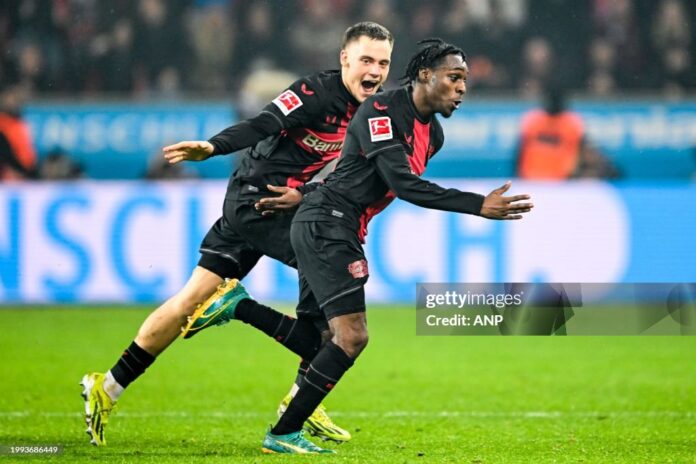 Alejandro Grimaldo added the second goal for Bayer Leverkusen in the 50th minute after a powerful run by Nathan Tella.