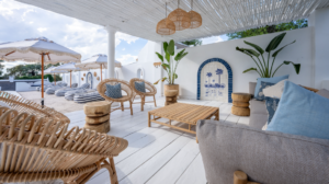 Featuring thatched, high ceilings and tall archways, the hotel welcomes light and infuses a sense of tranquility and space. Modern, minimalist interiors with a light blue, white and natural palette are accentuated by large, generous verandahs overlooking grassy lawns with dappled shade from leadwood and raintrees.